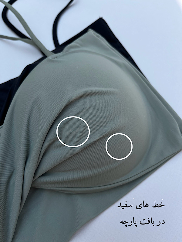 رنگ سبز : رنگ بندها با نیم تنه اختلاف رنگ جزیی دارد و خط های سفید ریز  در بافت پارچه ( زیاد نیست که مشخص باشه )
