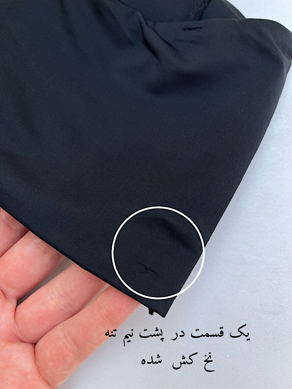 رنگ مشکی : در قسمت پشت نیم تنه یک  قسمت نخ کش شده